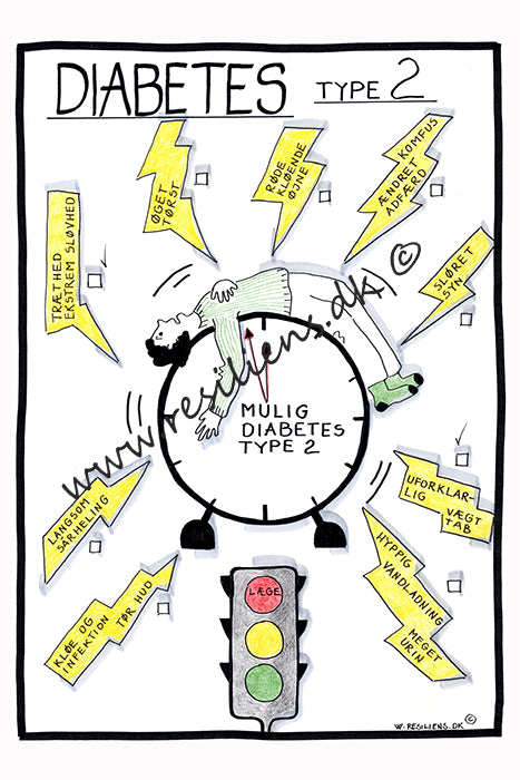 Type 2-diabetes kan udvikle sig langsomt og uden tydelige tegn, og hos ældre mennesker bliver symptomerne ofte overset, fordi de kan ligne almindelig aldring. Derfor er det vigtigt at være opmærksom på ændringer som øget tørst, hyppig vandladning, træthed, nedsat energi, uforklarlig vægttab, sløret syn, kløende øjne, langsom sårheling, hyppige infektioner, tør eller kløende hud samt generel svækkelse eller øget behov for hvile. Disse symptomer er ikke en normal del af aldring og bør altid tages alvorligt. Tidlig opdagelse gør det muligt at reagere i tide, få den rette vurdering og forebygge alvorlige komplikationer. Opmærksomhed på symptomer er en vigtig del af faglig omsorg og kan være med til at sikre bedre trivsel, behandling og livskvalitet for den enkelte.