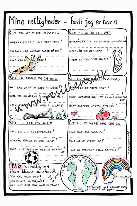 Min samtaleskabelon er udviklet for at gøre det lettere at tale med børn om deres rettigheder. Når børn kender deres rettigheder, styrker det deres tryghed, deres stemme og deres mulighed for at være aktive deltagere i deres eget liv.